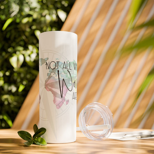 Explore the World: "Not All Who Wander Are Lost" Travel Tumbler - Skinny Tumbler with Straw, 20oz